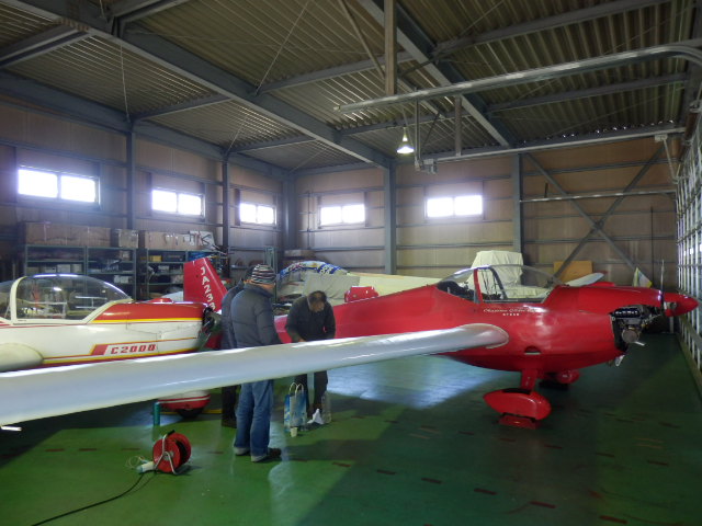 天気も悪いので、クラブルームと格納庫では、年末の