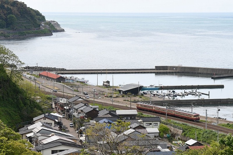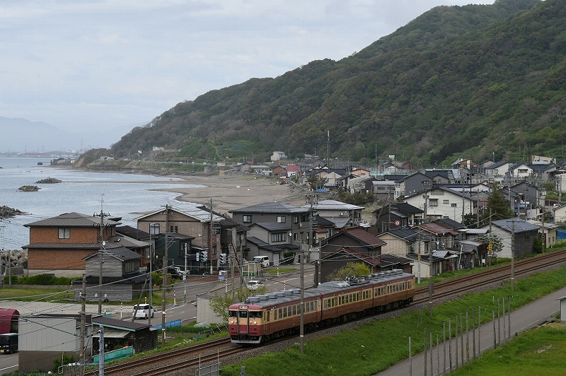 幹事に断って許可が得られたので西魚津で途中下車。同駅発車を撮影した後は追いかけるように普電で移動しました。