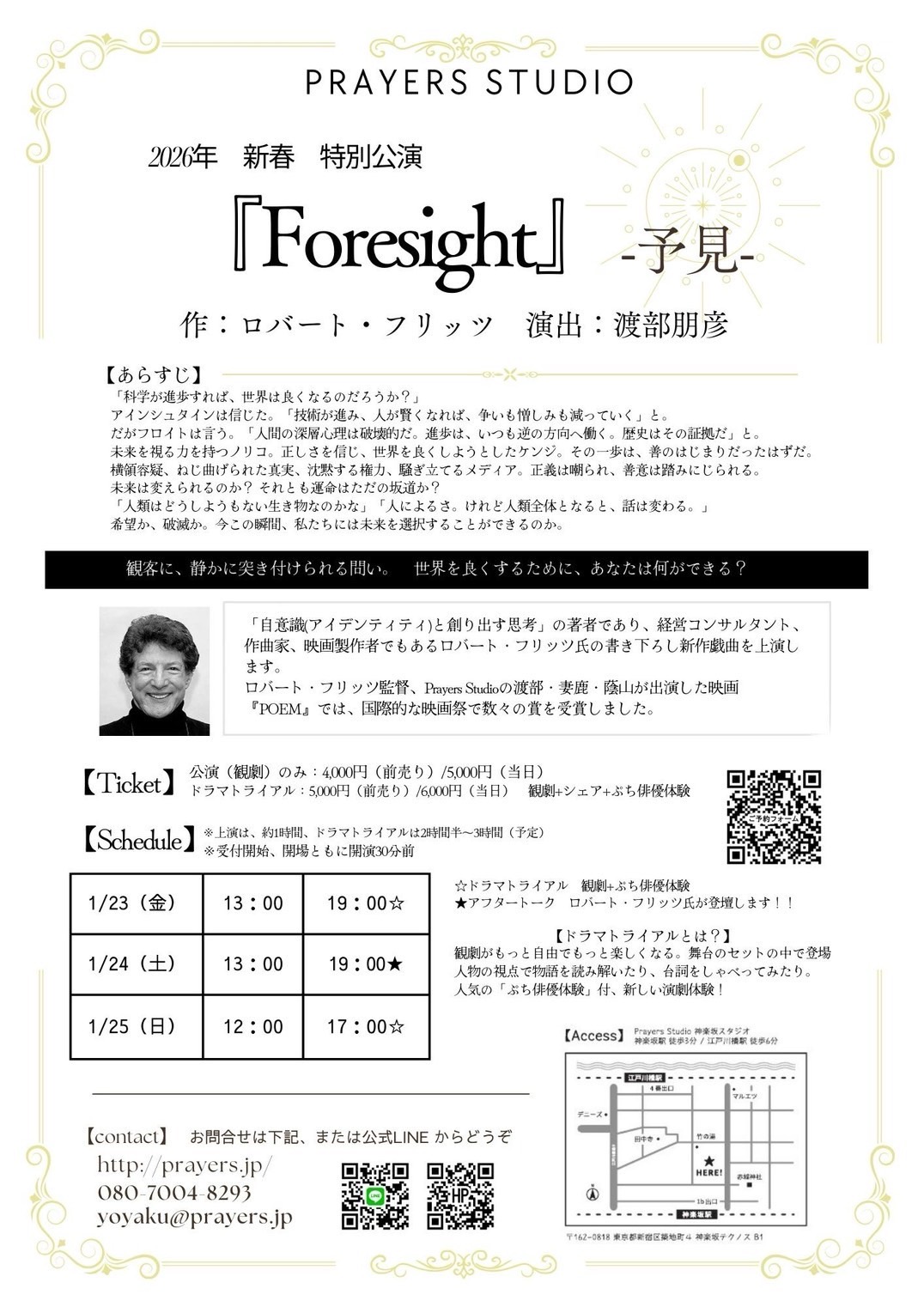 世界的思想家ロバート・フリッツが、日本の劇団Prayers Studioの俳優たちの表現力に触れたことが、『Foresight』誕生のきっかけに