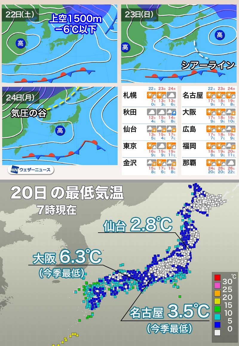 名古屋市の最低気温は今朝は4℃、大阪市は7℃と、今季最低をさらになりました。