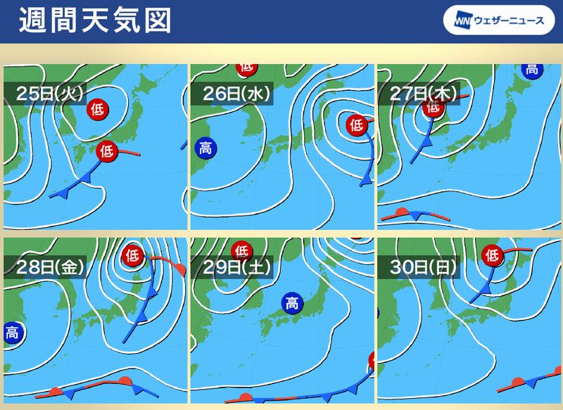 今朝までは日本列島のほぼ全域を覆っていた寒気は、大きく北へ退いていきます。