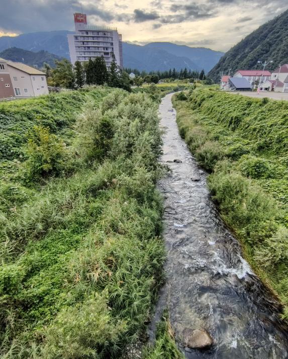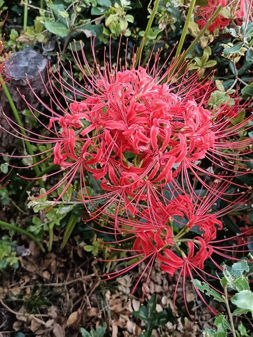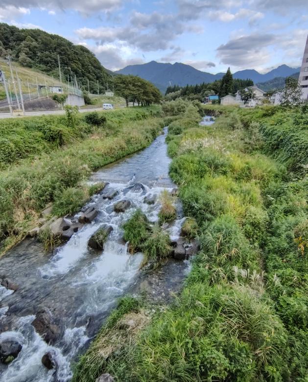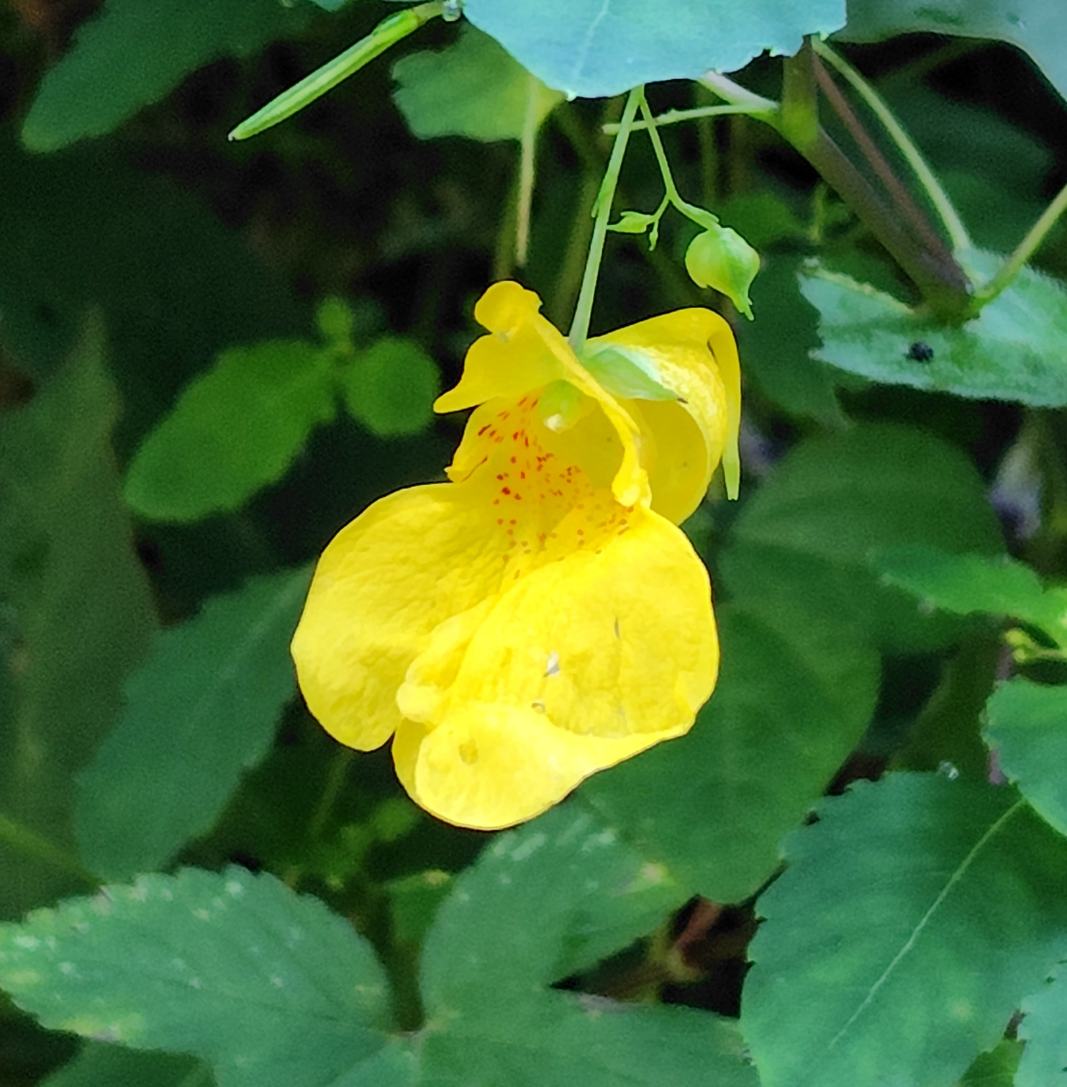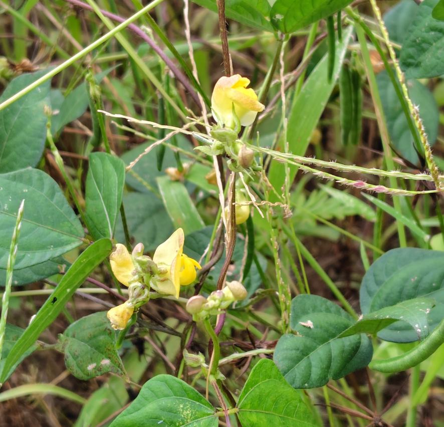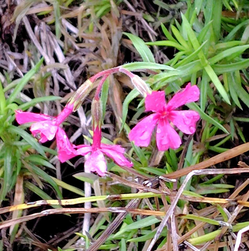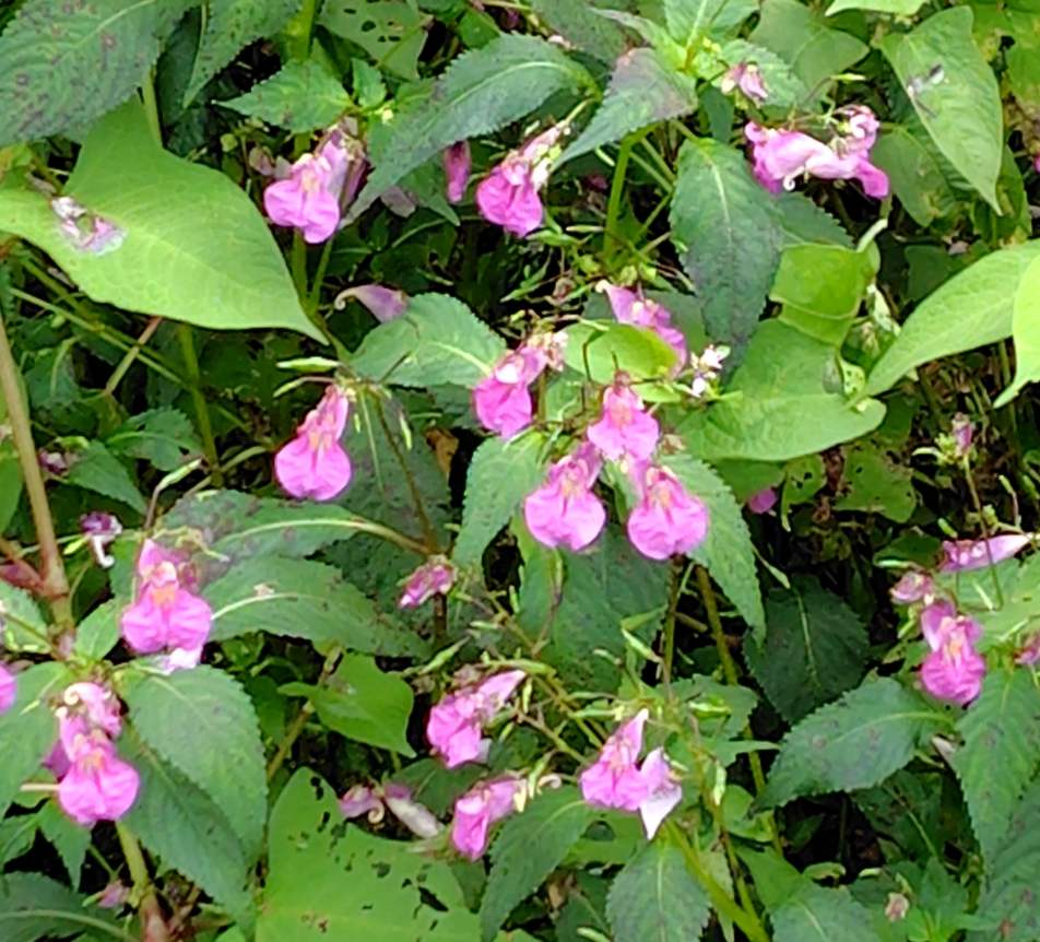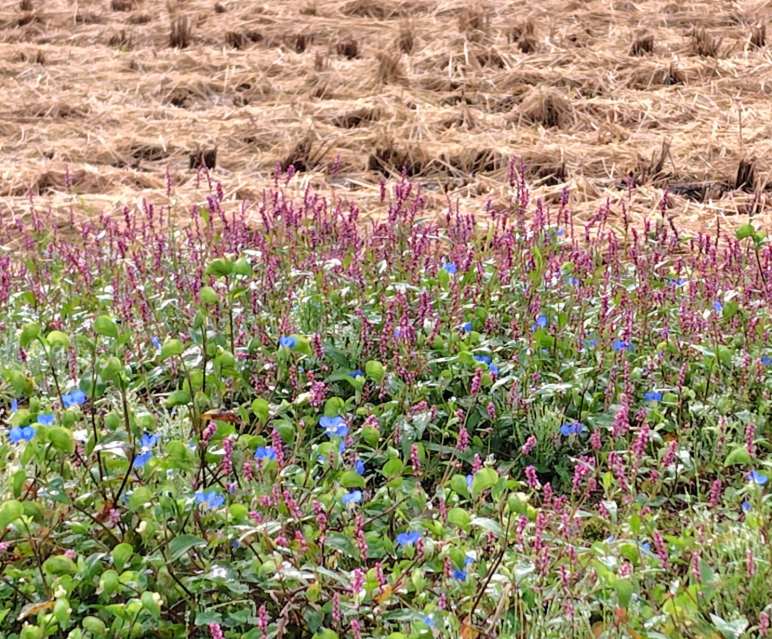 少し手前の青色の花はツユクサだ。この時期はツユクサが至る所に生えている。