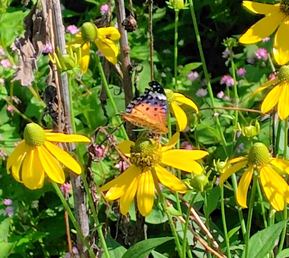 田圃のすぐ脇の濃いピンク色の草は、アメジストセージだ。他の田圃でも咲いていた。