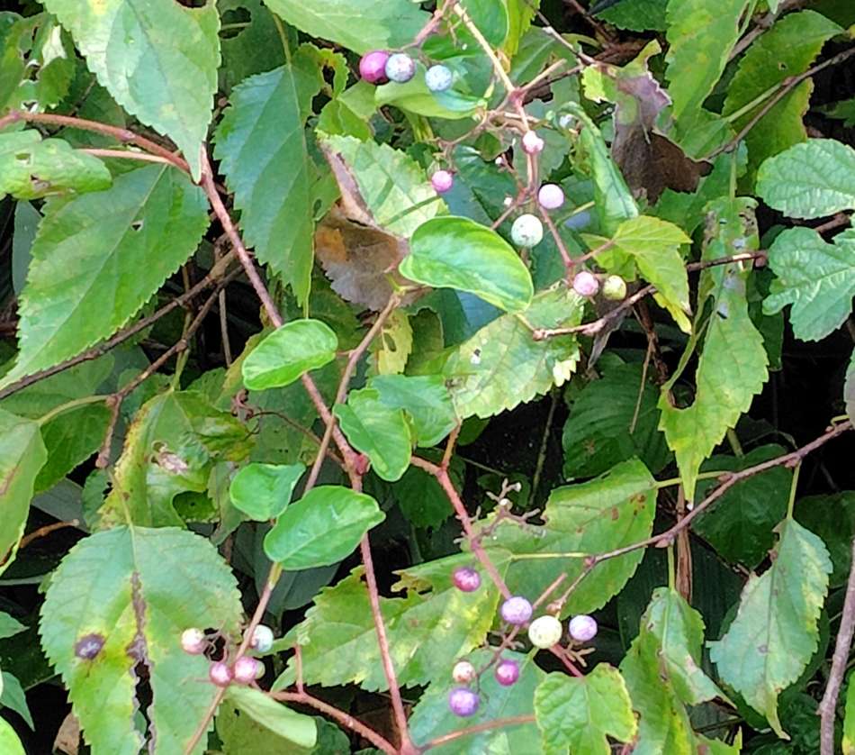写真2のノブドウの実は、小生は今年初めて見た。