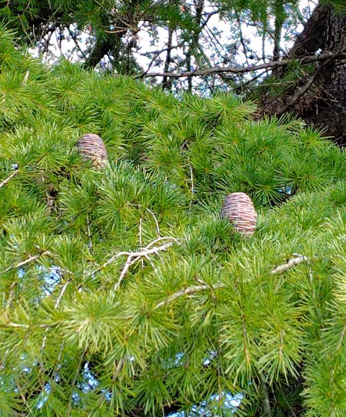 その間のヒマラヤ杉には、松ぼっくりが咲いている。