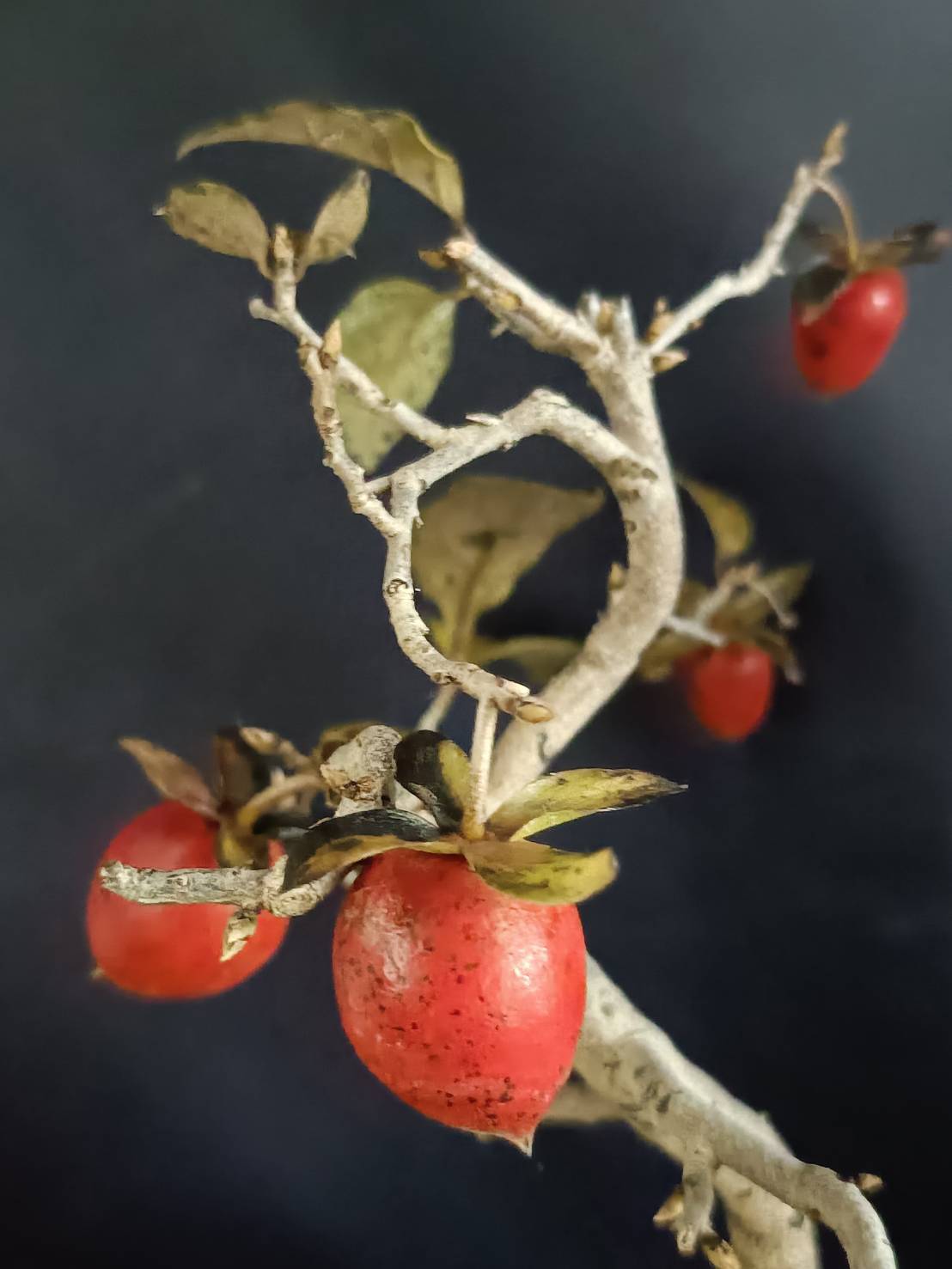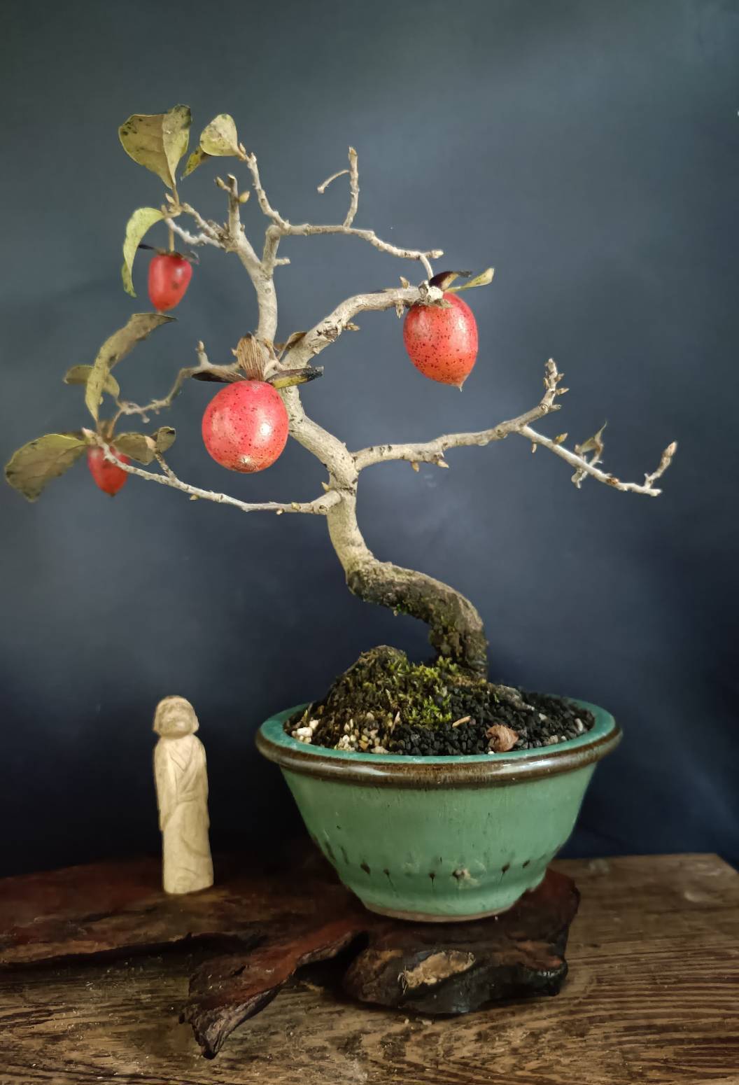 ぞらえ、命名。  わが国には、数十年前に渡来、柿のミニチュア版として盆栽での人気が高い。      春に開花、秋に果