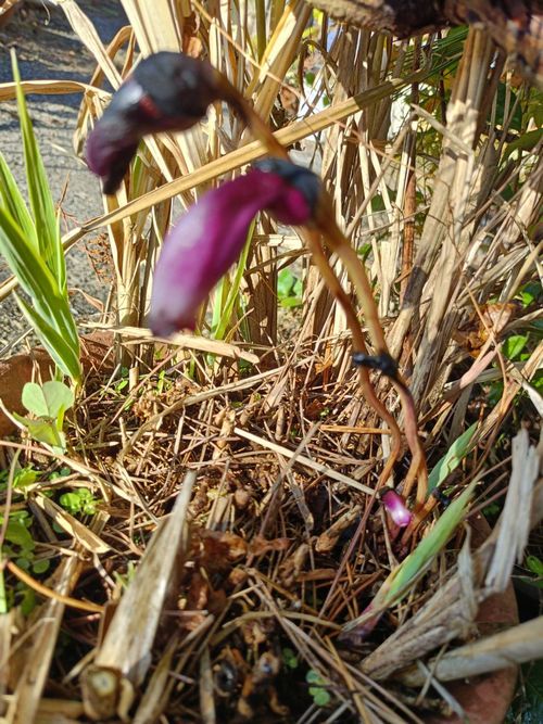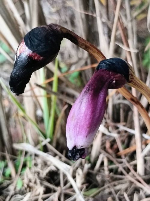 が阻害され 枯れることもある。 花期は晩秋 赤紫色の花を俯き加減につける。花冠は筒型で唇形。 花茎は15〜20a。