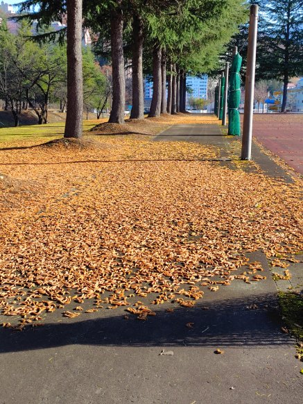 写真1のい雄花は、それでも一時よりは少なくなったのだ。一時は歩きづらくて仕方がなかった!