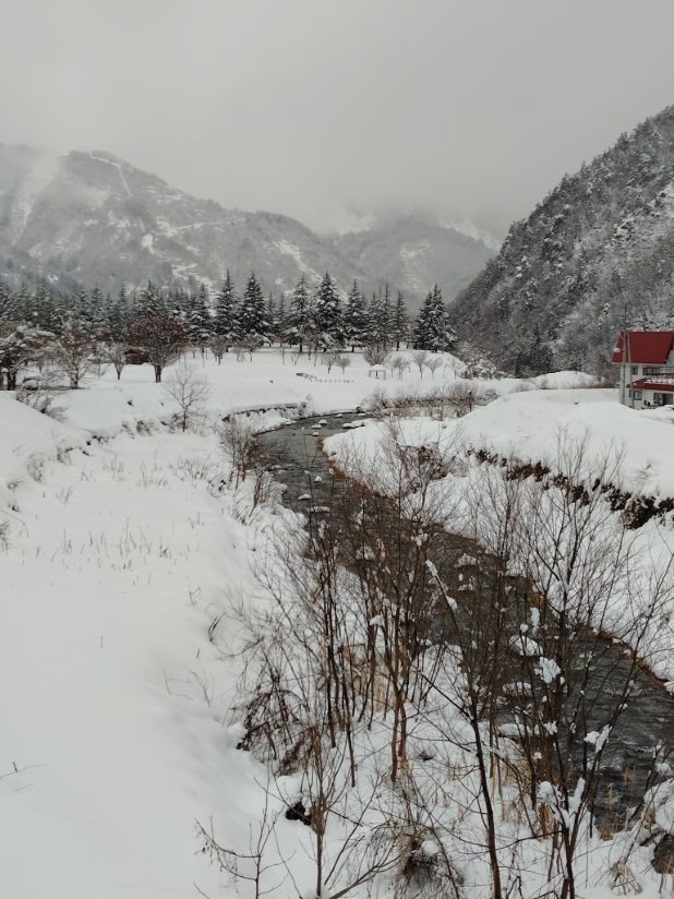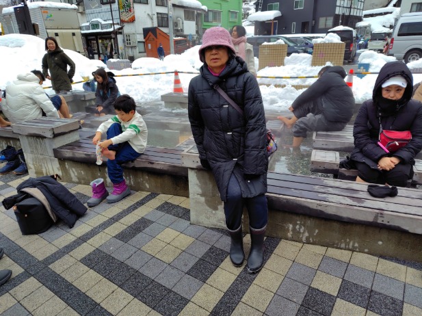 雪の中でも髭面の外人が足を漬けてるのが、見てて面白い。
