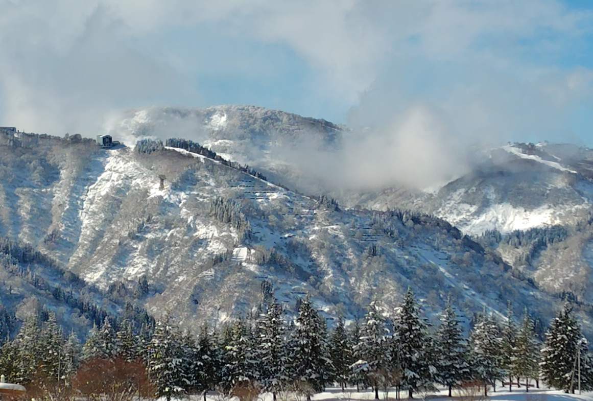 写真1や2に写っている山の中に、白っぽい下りのライン部分が見えるが、それはスキー場だ。