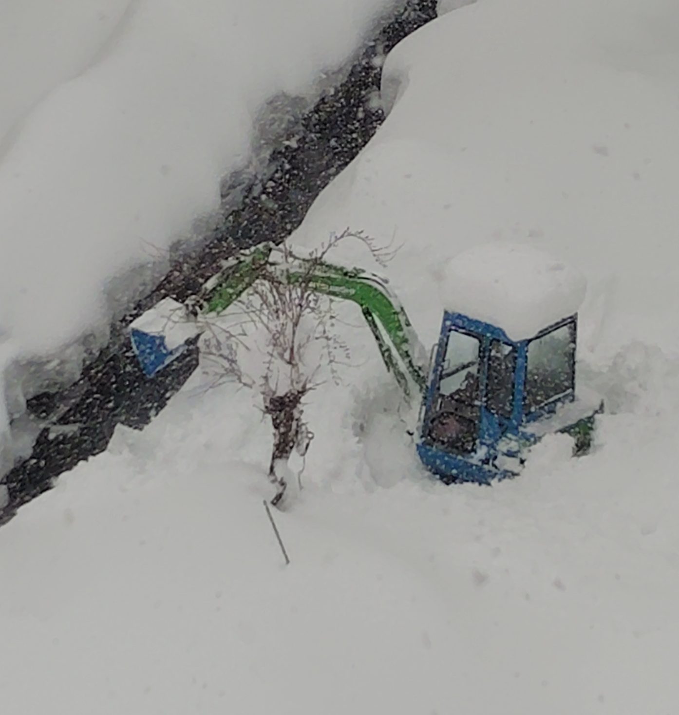 写真1のように、隣家の雪かきは小型のブルを使っての雪かきだ。