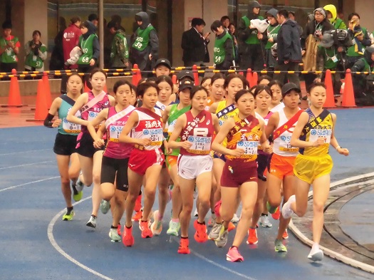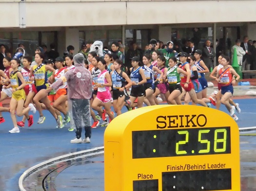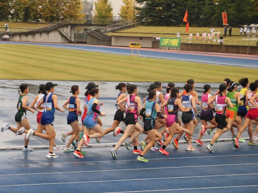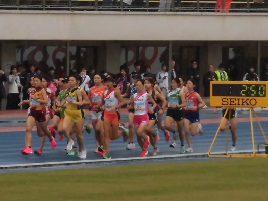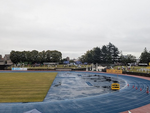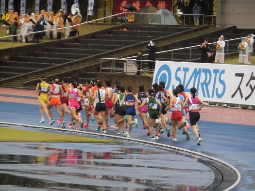 競技場内トラックを約1周半回ります。
