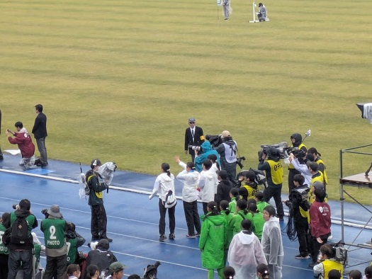 競技場を出て、3区の選手を沿道から応援しました。
