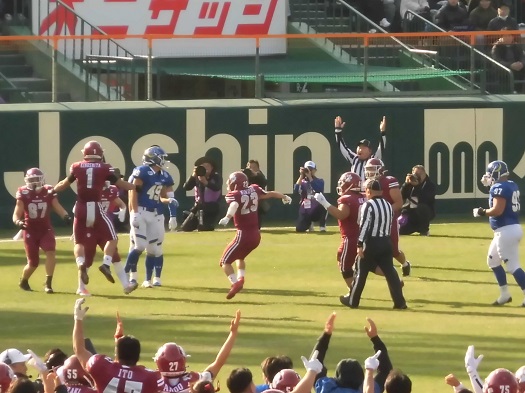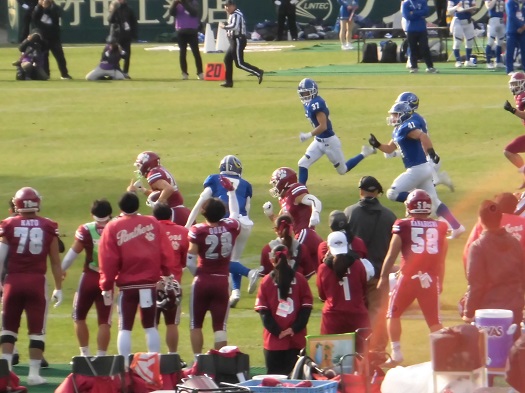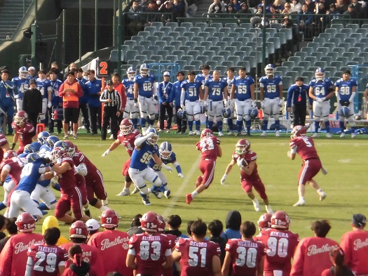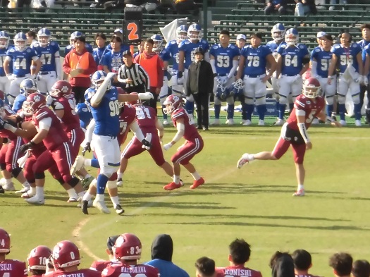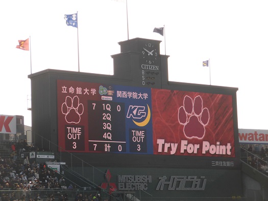 関学の攻撃をパントに抑え立命攻撃に代わります。