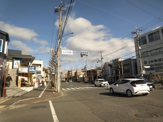 わら天神近くの交差点を左折します。