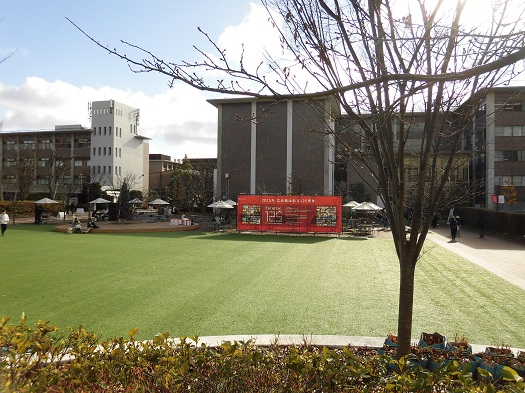 年末訪問時には立命館125周年の看板がまだ設置されていました。