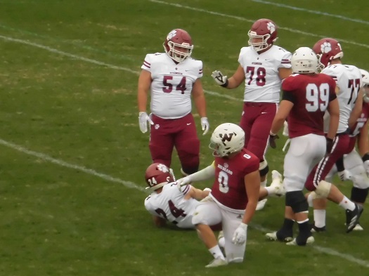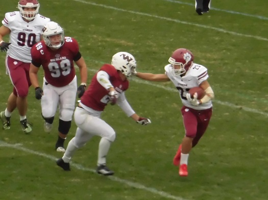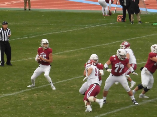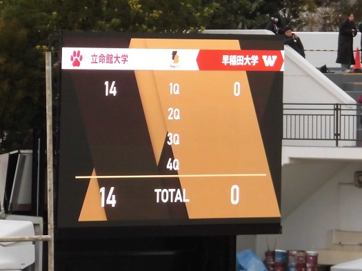 返しの早大攻撃はパントで終了、立命攻撃に替わります。