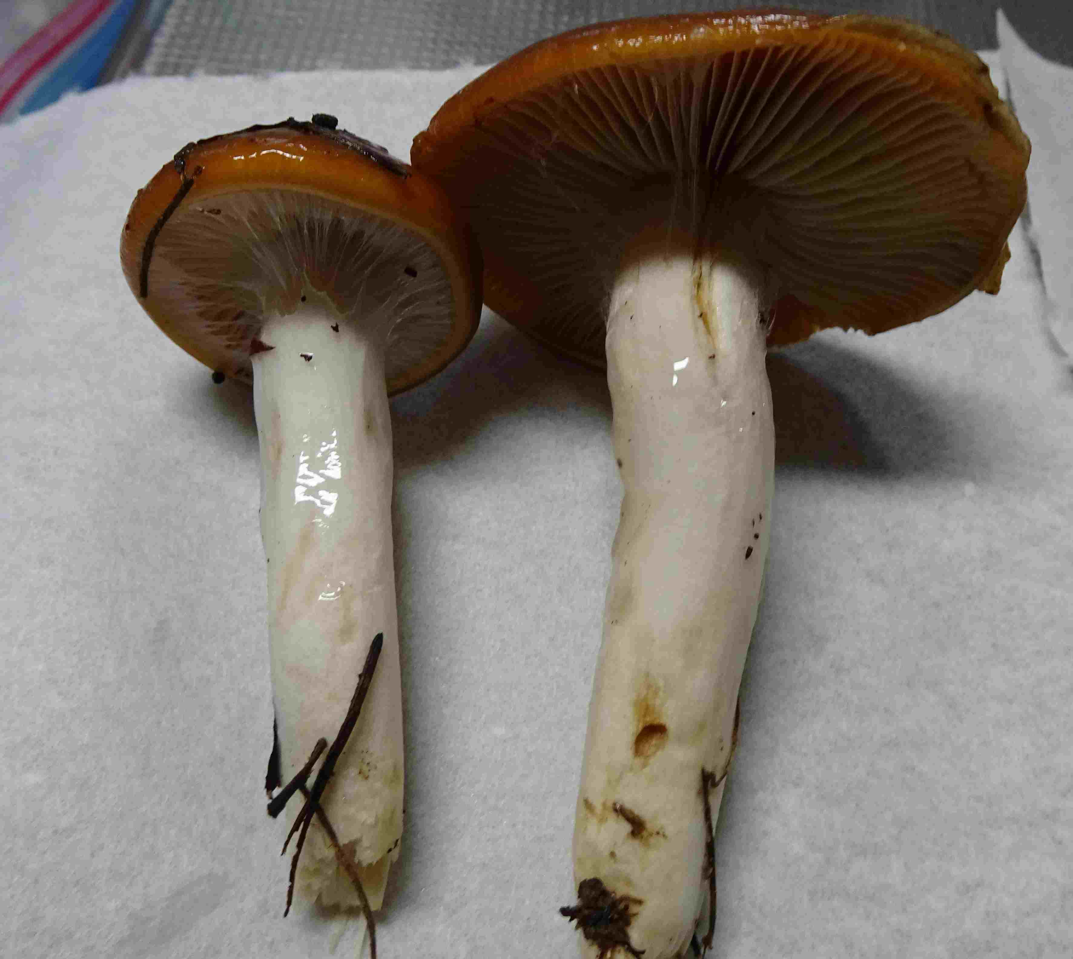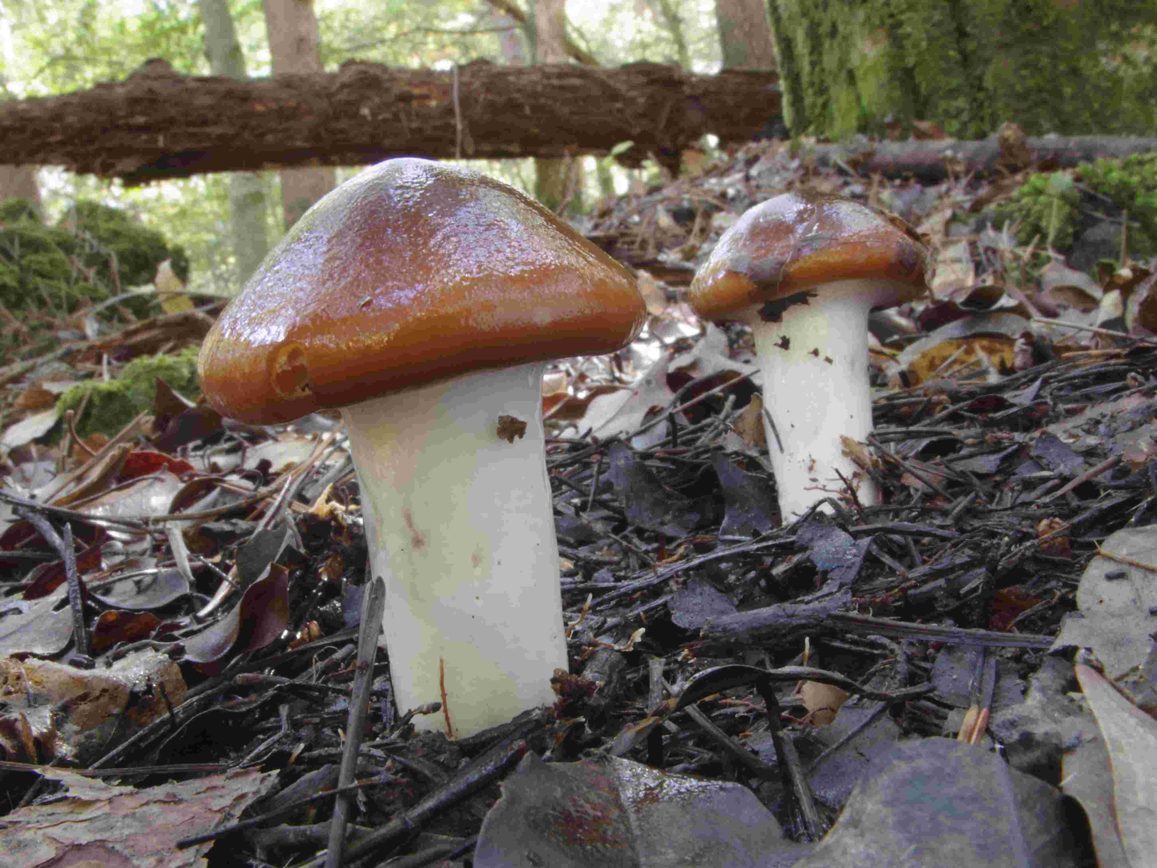 1. TO > 2025/10/9(木) 10:08:07 ヌメリササタケではないと思われます。これと同じものを富士山周辺のアカマツ林で時々見かけムラサキアブラシメジモドキの色が薄いタイプとしていましたが、よく見ると別種のようで種名は分かりません。 2. Toki > 2025/10/9(木) 19:25:21 ありがとうございます。よく見ると基部が膨らんでいるのが違うのかな、と思います。