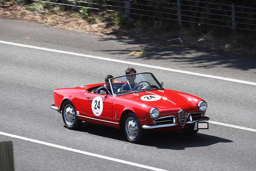 La Festa Autunno 2025   開催に、これは行かないとと思い腰も上がる。昨年は天気が悪く、曇りの最終日1日だけ撮って終わった。今年は予報だと前半の2日は、まあまあ良さそうで、後半は崩れてくるようだ。それで初日の5:30出発した。今回は、だいぶ慣れてきたので、流し撮りとかビビってできないアングルも試したかった。そこでMapで候補にした6箇所ほどを探し、高速区間で狙おうと思った。現地に行ってみると、3箇所目が脚立も入らず、撮影できそうで、ここで撮影を始める。まだ通過まで3時間以上あるので、光線はこれからどんどん悪くなる。流し撮りの調子も、久しぶりのせいかシンクロ率が低い。加えて3車線中、最速追越車線は反射板があって、まともに撮影できない。旧車だから、走行車線をまったりくるとイメージしてたが、これが大誤算につながる。