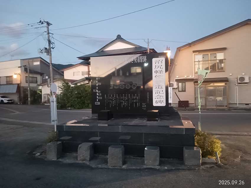 駅に入る通りにくると、まるでその先に行けば、沼尻鉄道が現役で走っているような雰囲気で、なんともいい気分。静かな駅前には、記念碑が建つものの、やはり軌道は失われて物足りない。