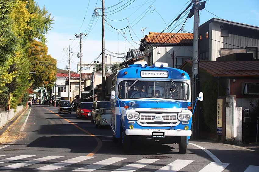 南部縦貫に行くかと思っていたのだけれど、直前まで天気が悪いことと、万が一雪が降ったらという懸念もあり、天気が良いような群馬県イベントを選んだ。古い町並みをボンネットバス・旧車がラリーで走り、近くにはモノレールもあるので、ネタがいっぱい。ちょっと不満なのが、安全対策のためか、全くコースを発表しないので、バスも旧車も撮りようがないのだ。早朝から現地に入り情報聞き込みに向かうと、もうボンバスが来てしまった。コースも予測できる範囲で順光なところを探すが、どうにも難しい。とりあえず先に押さえようと撮っていると、ラリーも出走し撮れてしまった。とりあえず、結果オーライ。