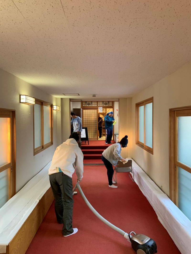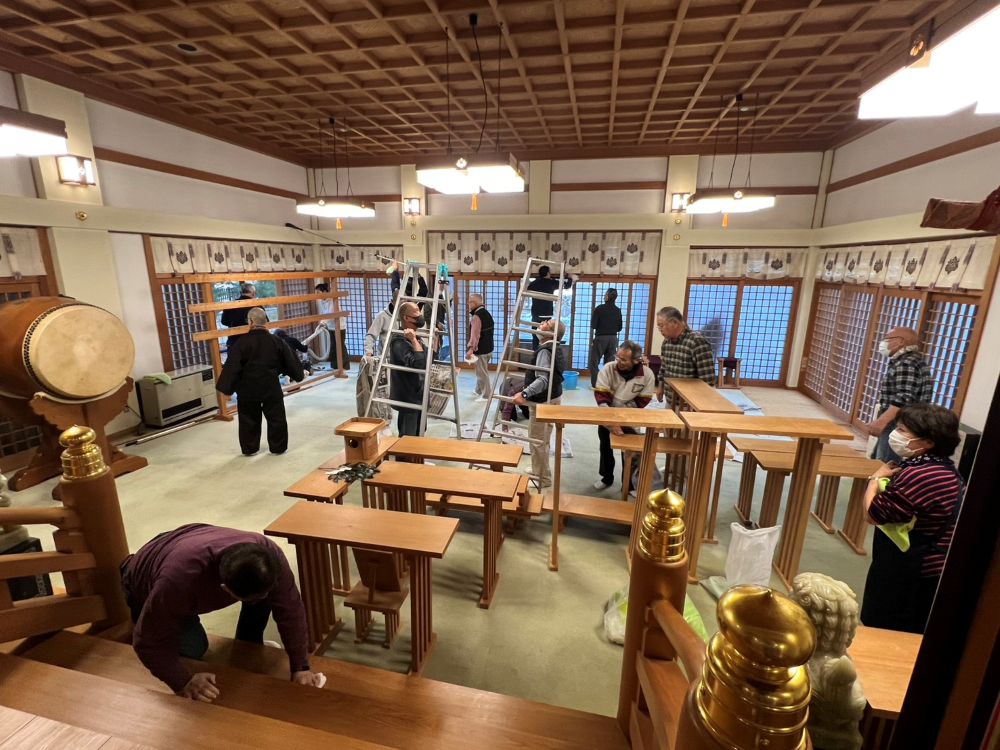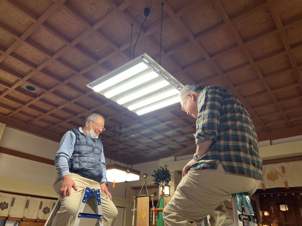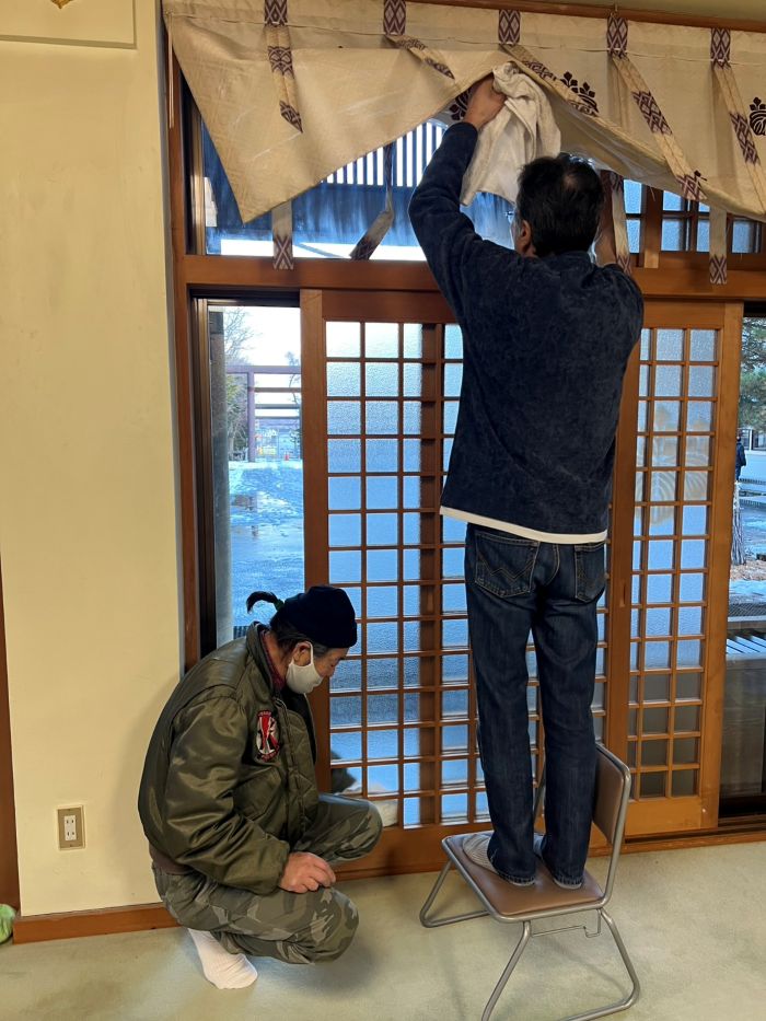 境内の清掃奉仕、注連縄の取替え、看板設置、