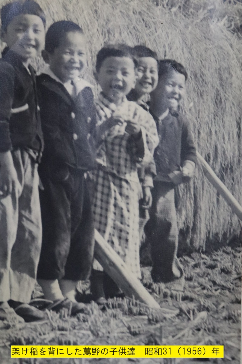 薦野で育った昭和30年代この時期、子供の役割は稲刈り後の落穂拾い。田んぼ一面に組