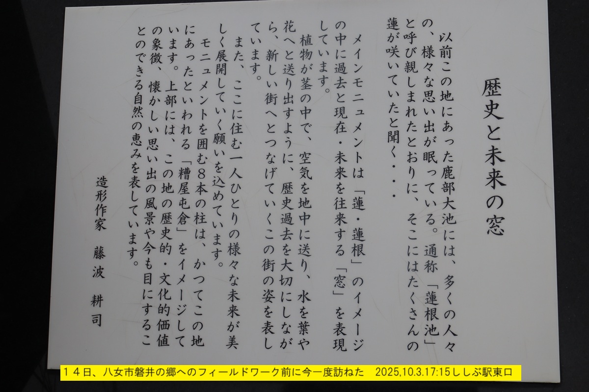 JRししぶ駅東口のモニュメントを13日の夕刻、改めて見てきました。翌日は八女市の