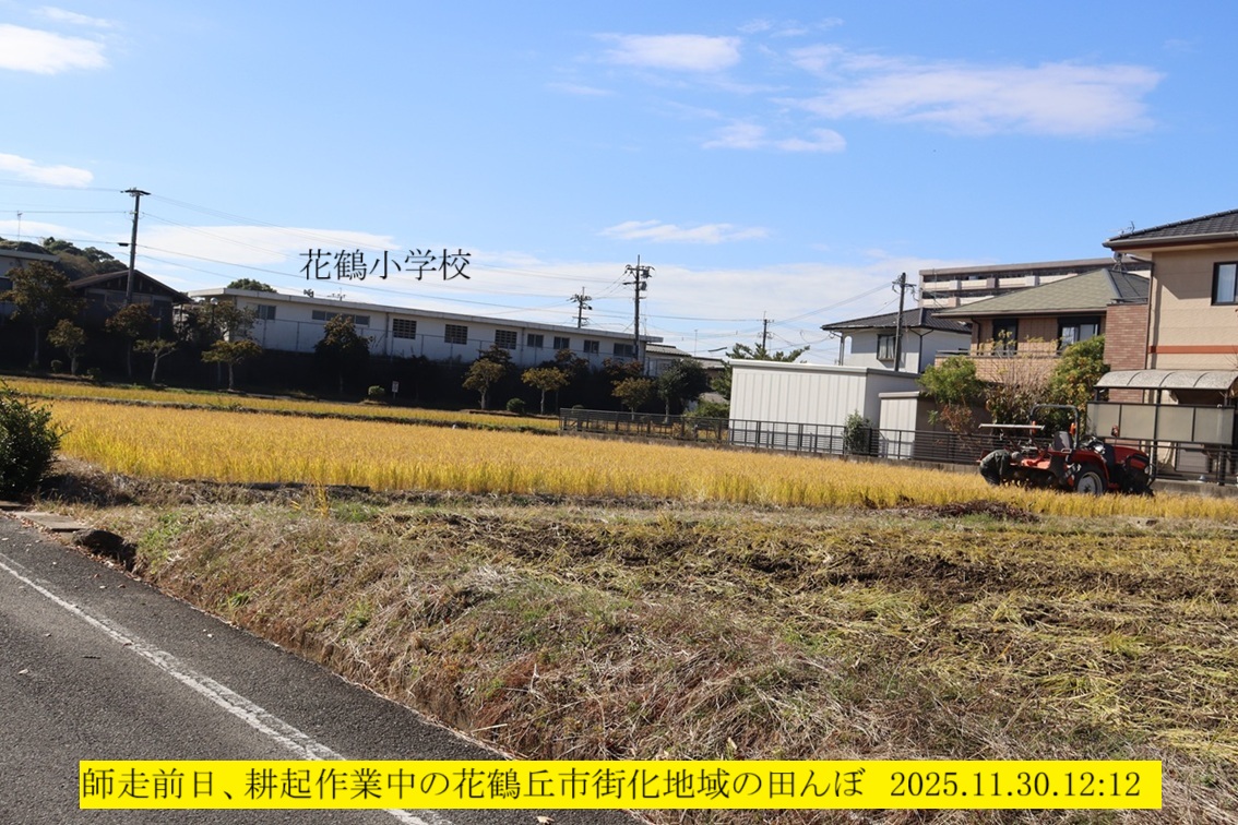 近くの3年前の稲田は消えて目下、児童支援センターへ工事中。花鶴丘地域田んぼの残存