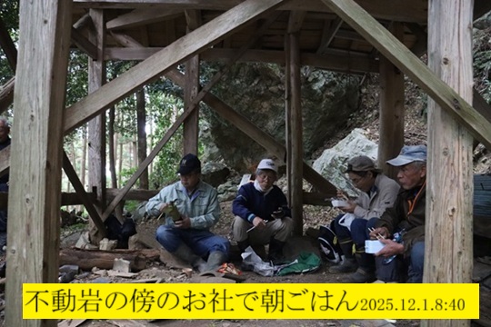 の不動岩まで登山、下のお社で祀る二手に分かれて8時から開始。