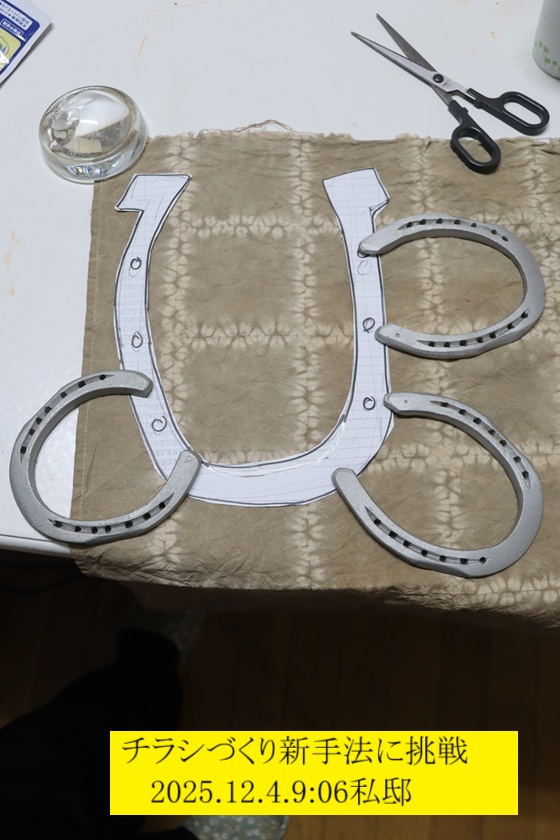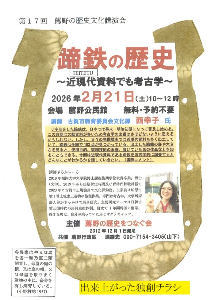 そこで今回、2月21日の薦野の歴史文化講演会のチラシ作成にあたり布地の端切れ使