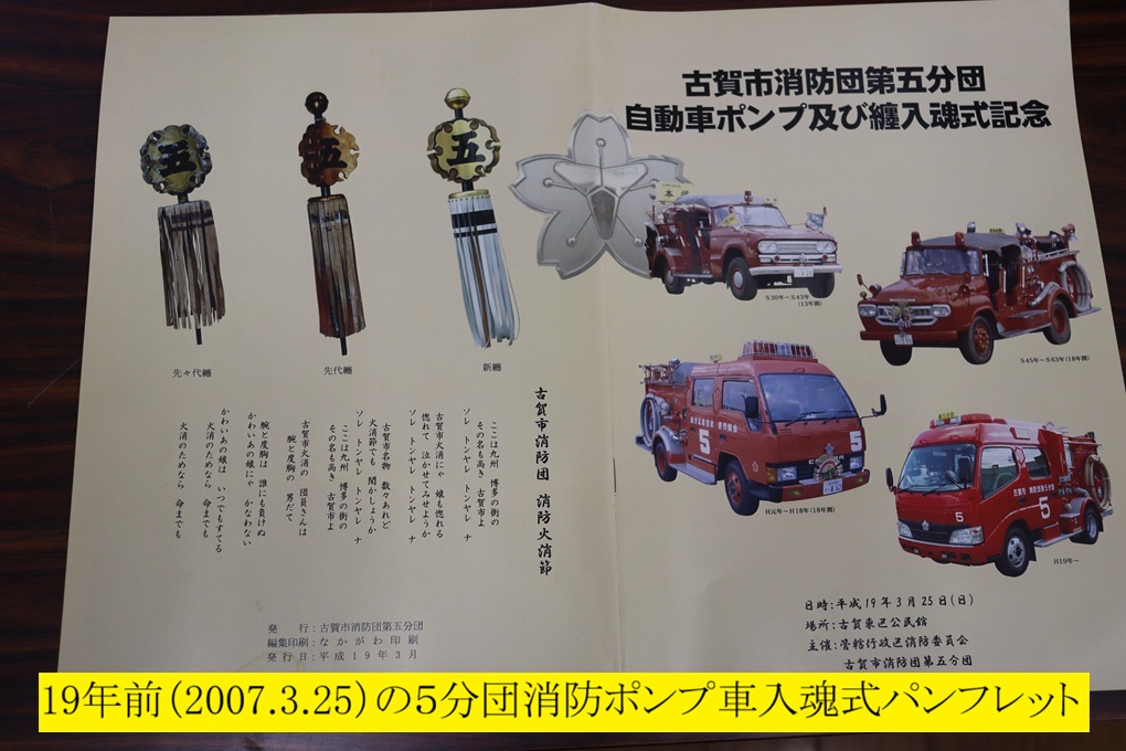 底冷えのする今日の15時30分、古賀市消防団関係者が一堂に会する消防ポンプ車の