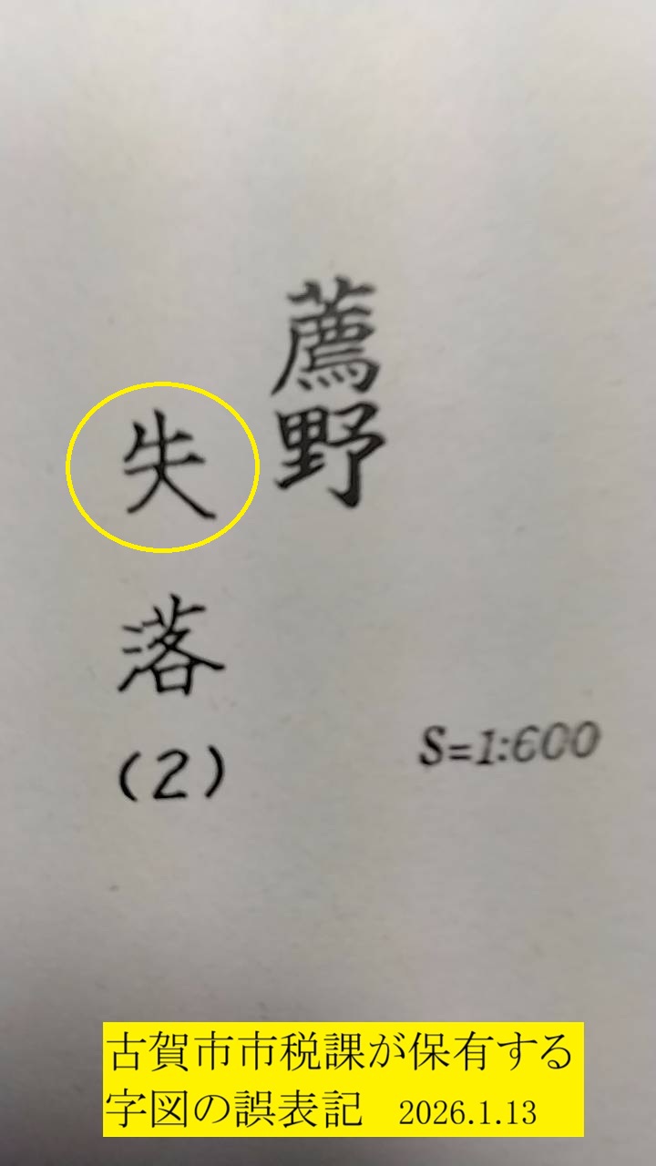 【字名の訂正処理 8日、薦野の字図の交付を受けた者ですが薦野の「失落」(105)