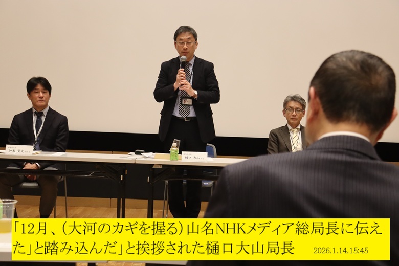 祈願のあと15時30分、NHK福岡放送局で代表団14人が30年ぶりの福岡出身の樋口