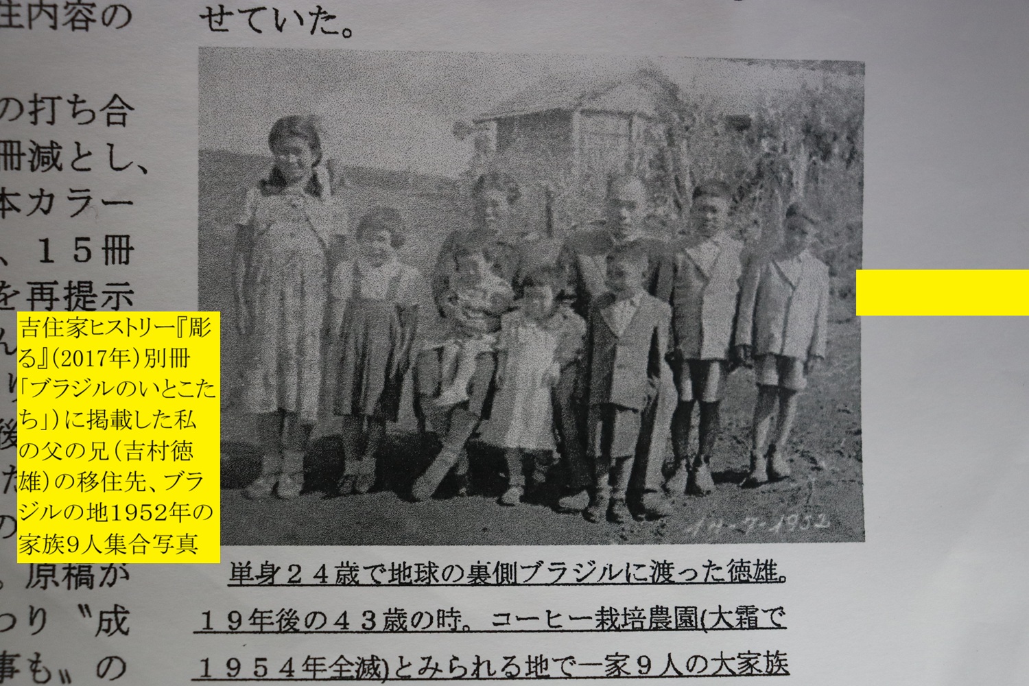 入れ替わりで筵内伯父(吉村徳雄)は1933年に神戸を出港、ブラジルに移民、永眠
