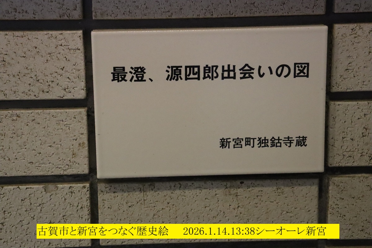 シーオーレ新宮で道雪会の会議出席に絡めて最澄伝説の話題。同館の1階エレベーター横